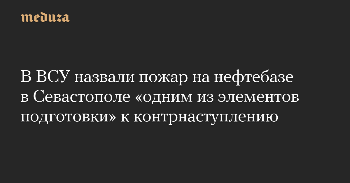 В ВСУ назвали пожар на нефтебазе в Севастополе «одним из элементов подготовки» к контрнаступлению