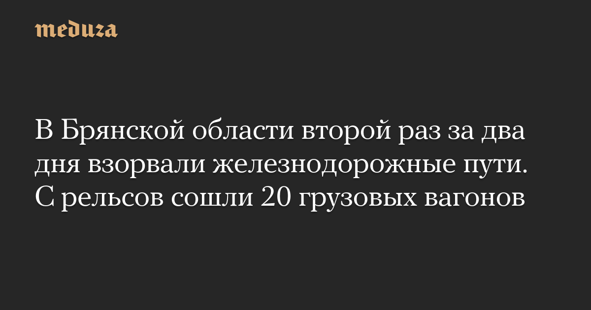 В Брянской области второй раз за два дня взорвали железнодорожные пути. С рельсов сошли 20 грузовых вагонов