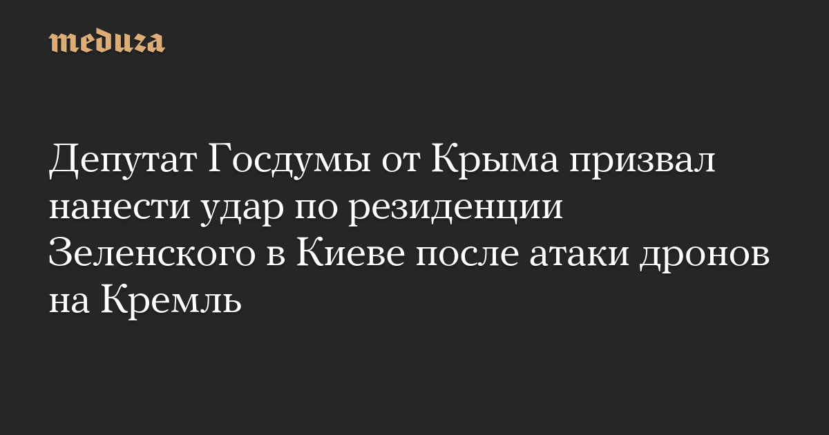 Депутат Госдумы от Крыма призвал нанести удар по резиденции Зеленского в Киеве после атаки дронов на Кремль