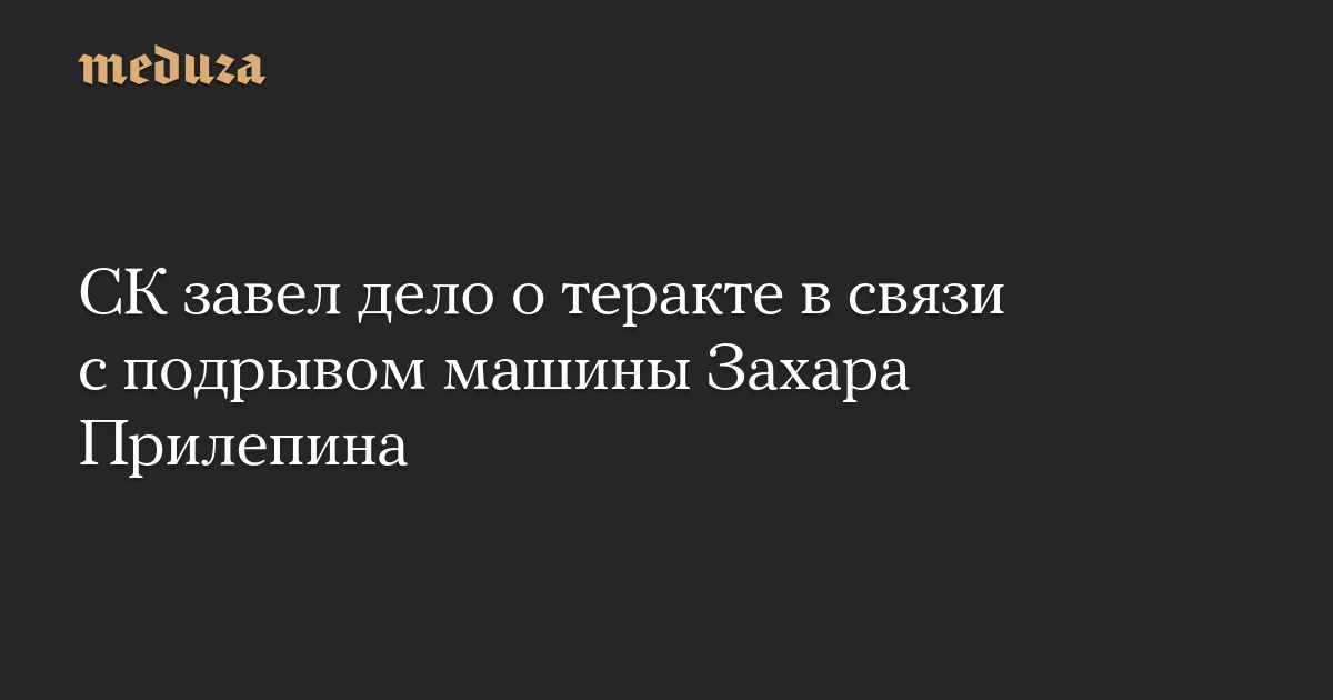 Главное следственное управление СК РФ возбудило уголовное дело по статье о теракте в связи с подрывом автомобиля Захара Прилепина, сообщает пресс-служба ведомства.