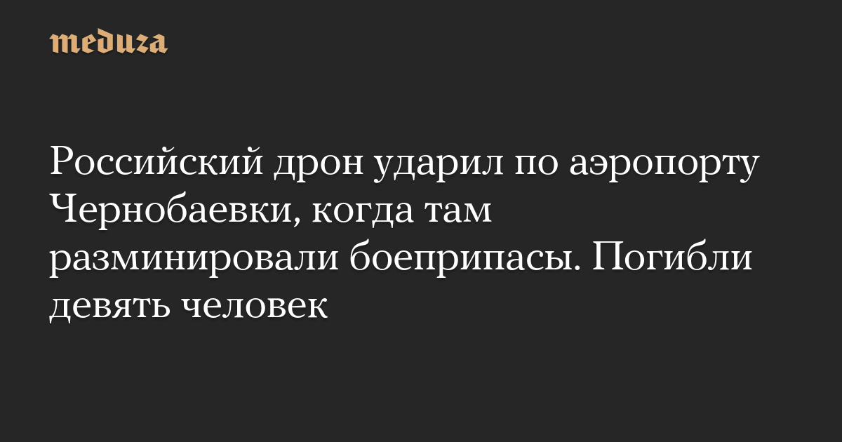 Российский дрон ударил по аэропорту Чернобаевки, когда там разминировали боеприпасы. Погибли девять человек
