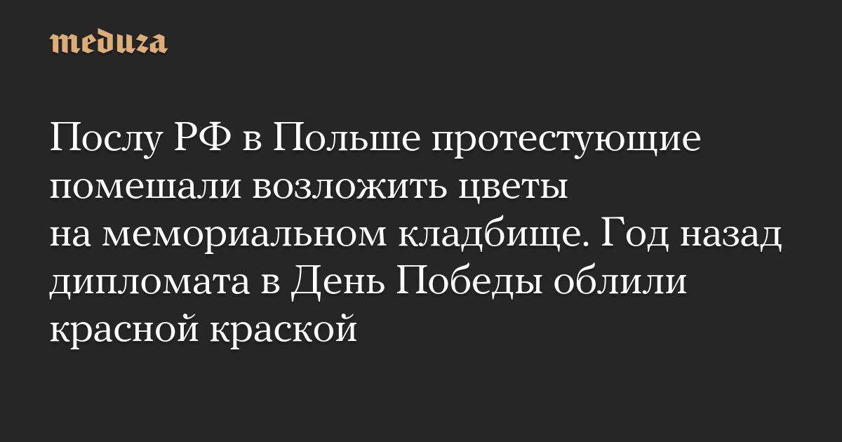 Послу РФ в Польше протестующие помешали возложить цветы на мемориальном кладбище. Год назад дипломата в День Победы облили красной краской