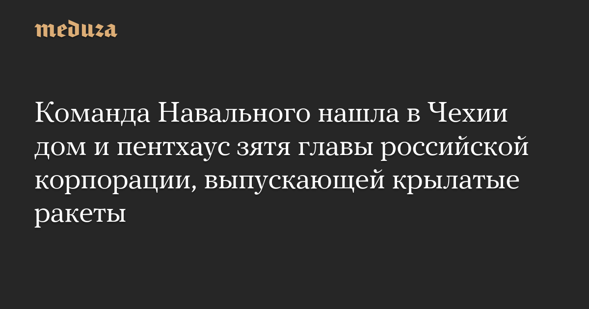 Команда Навального нашла в Чехии дом и пентхаус зятя главы российской корпорации, выпускающей крылатые ракеты