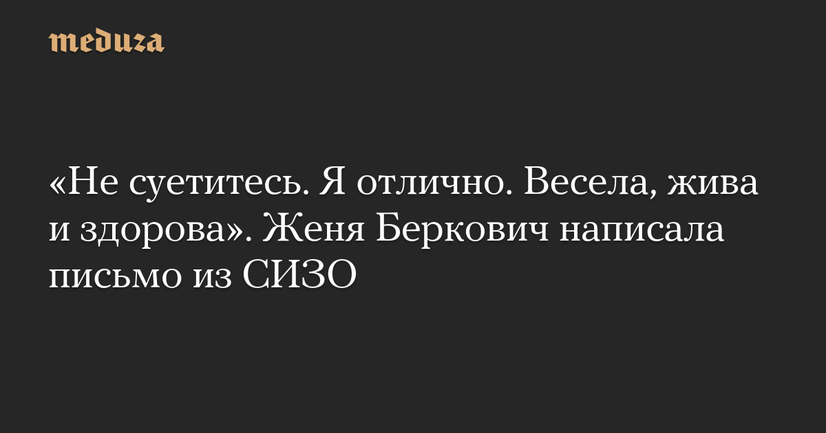 «Не суетитесь. Я отлично. Весела, жива и здорова». Женя Беркович написала письмо из СИЗО
