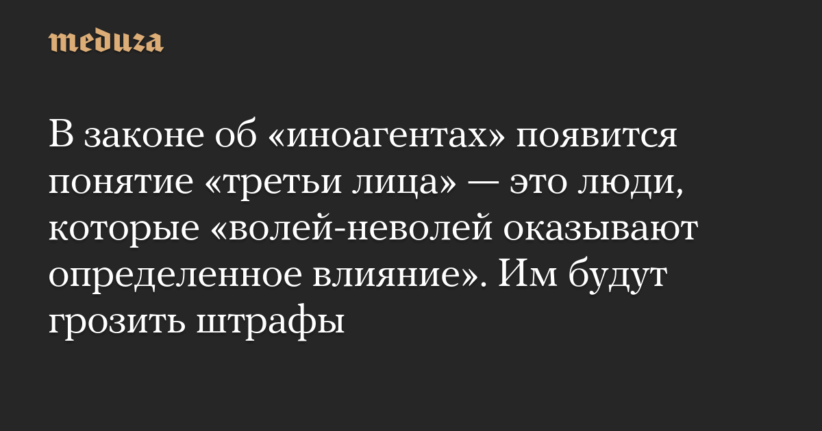 В законе об «иноагентах» появится понятие «третьи лица» — это люди, которые «волей-неволей оказывают определенное влияние». Им будут грозить штрафы