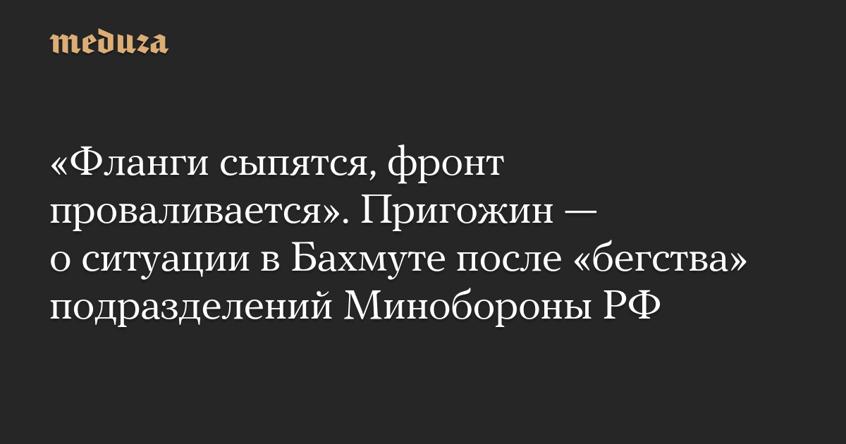 «Фланги сыпятся, фронт проваливается». Пригожин — о ситуации в Бахмуте после «бегства» подразделений Минобороны РФ