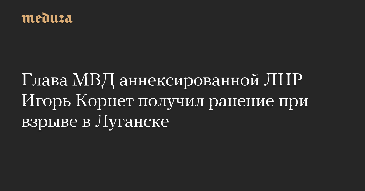 В результате взрыва в центре Луганска получил ранение глава МВД аннексированной ЛНР Игорь Корнет. Об этом сообщают ТАСС и РИА Новости со ссылкой на источники.