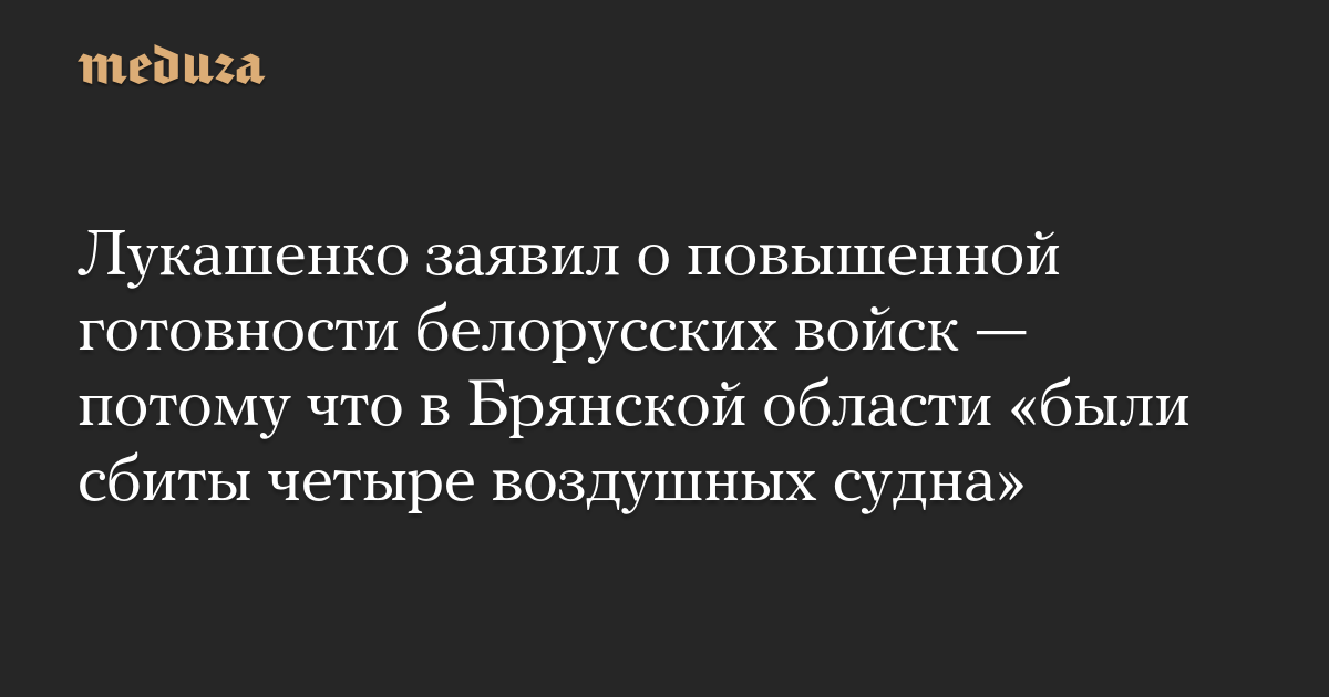 Лукашенко заявил о повышенной готовности белорусских войск — потому что в Брянской области «были сбиты четыре воздушных судна»