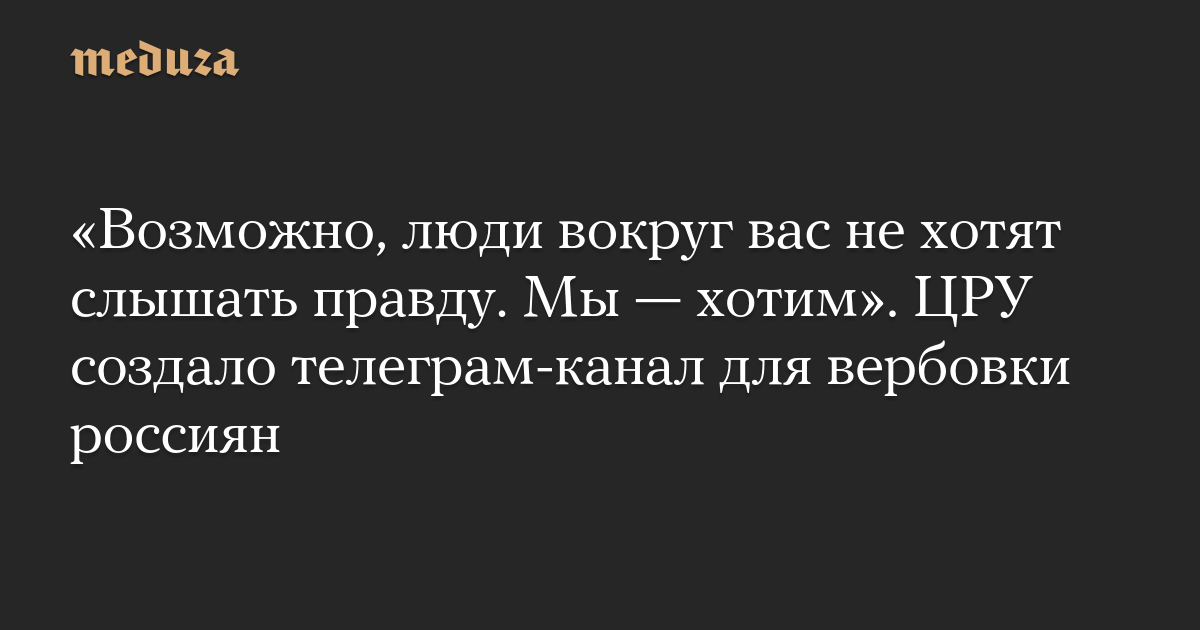 «Возможно, люди вокруг вас не хотят слышать правду. Мы — хотим». ЦРУ создало телеграм-канал для вербовки россиян