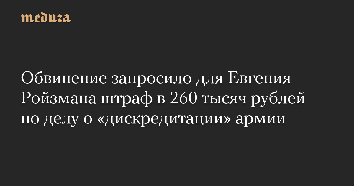 Обвинение запросило для Евгения Ройзмана штраф в 260 тысяч рублей по делу о «дискредитации» армии