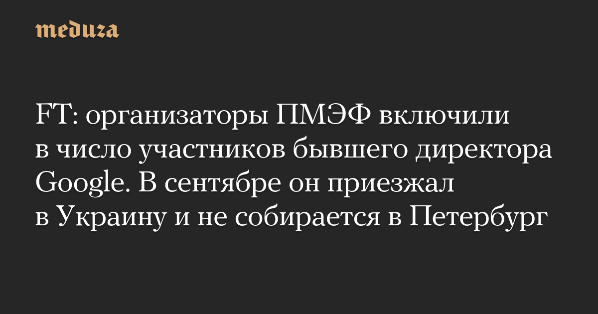 FT: организаторы ПМЭФ включили в число участников бывшего директора Google. В сентябре он приезжал в Украину и не собирается в Петербург