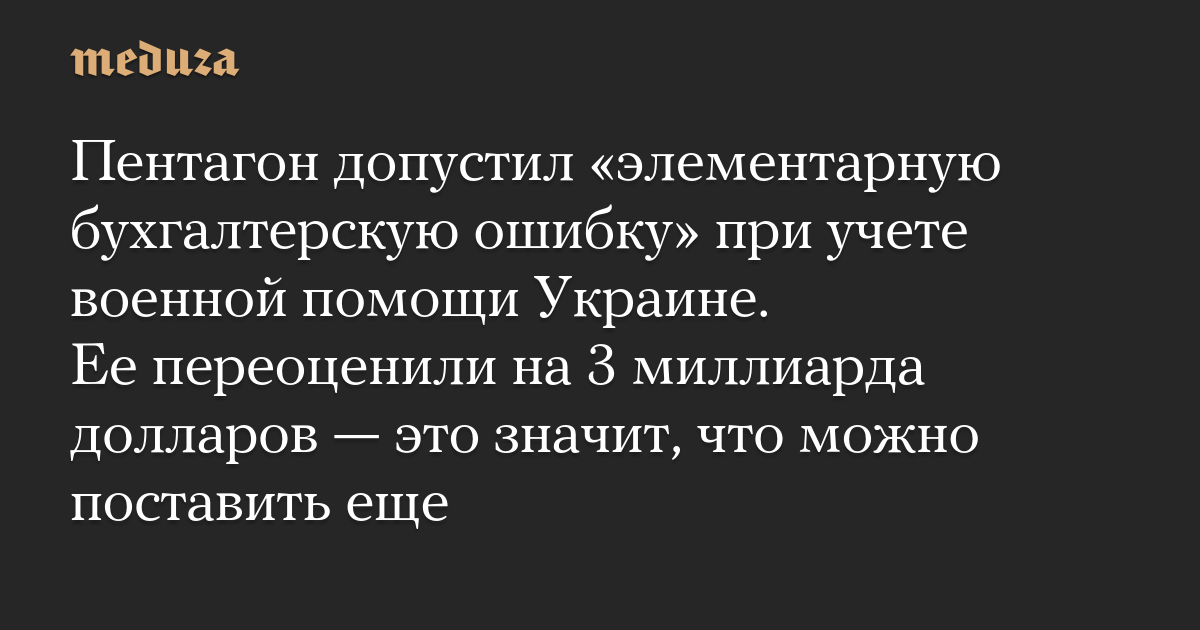 Пентагон допустил «элементарную бухгалтерскую ошибку» при учете военной помощи Украине. Ее переоценили на 3 миллиарда долларов — это значит, что можно поставить еще