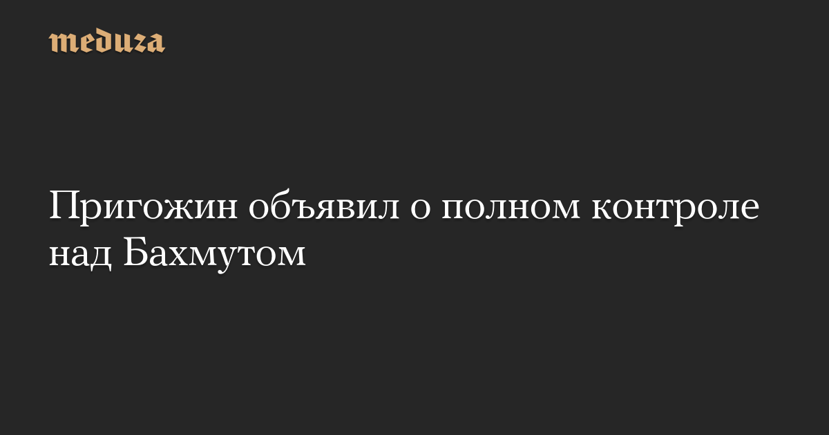 Основатель ЧВК Вагнера Евгений Пригожин заявил, что его группировка полностью контролирует Бахмут.