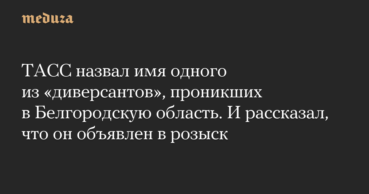 ТАСС назвал имя одного из «диверсантов», проникших в Белгородскую область. И рассказал, что он объявлен в розыск