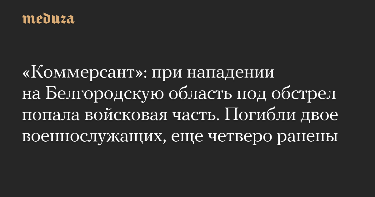«Коммерсант»: при нападении на Белгородскую область под обстрел попала войсковая часть. Погибли двое военнослужащих, еще четверо ранены