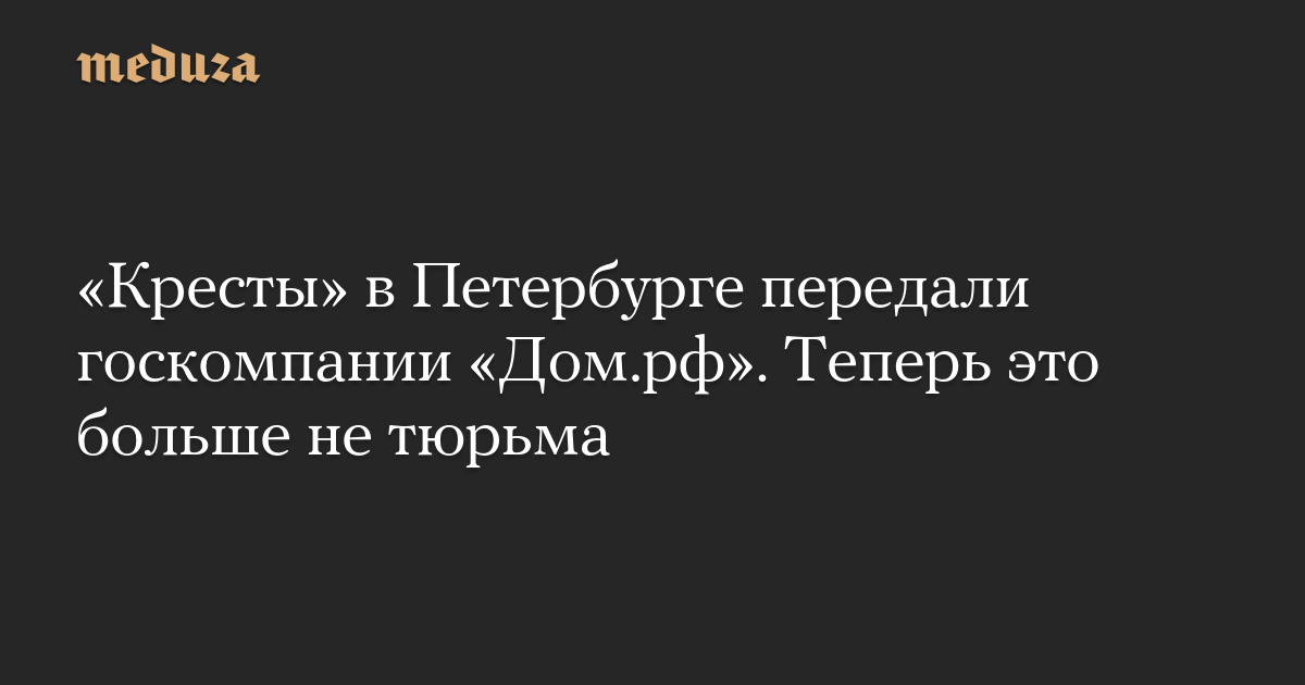 «Кресты» в Петербурге передали госкомпании «Дом.рф». Теперь это больше не тюрьма