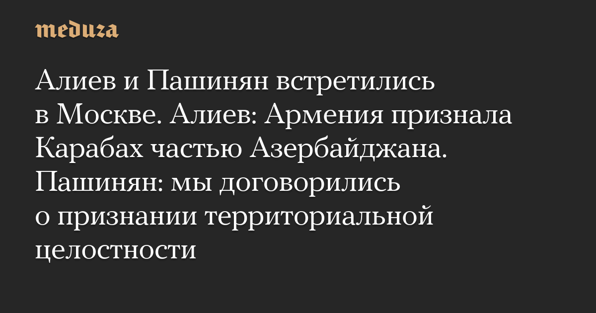 Алиев и Пашинян встретились в Москве. Алиев: Армения признала Карабах частью Азербайджана. Пашинян: мы договорились о признании территориальной целостности
