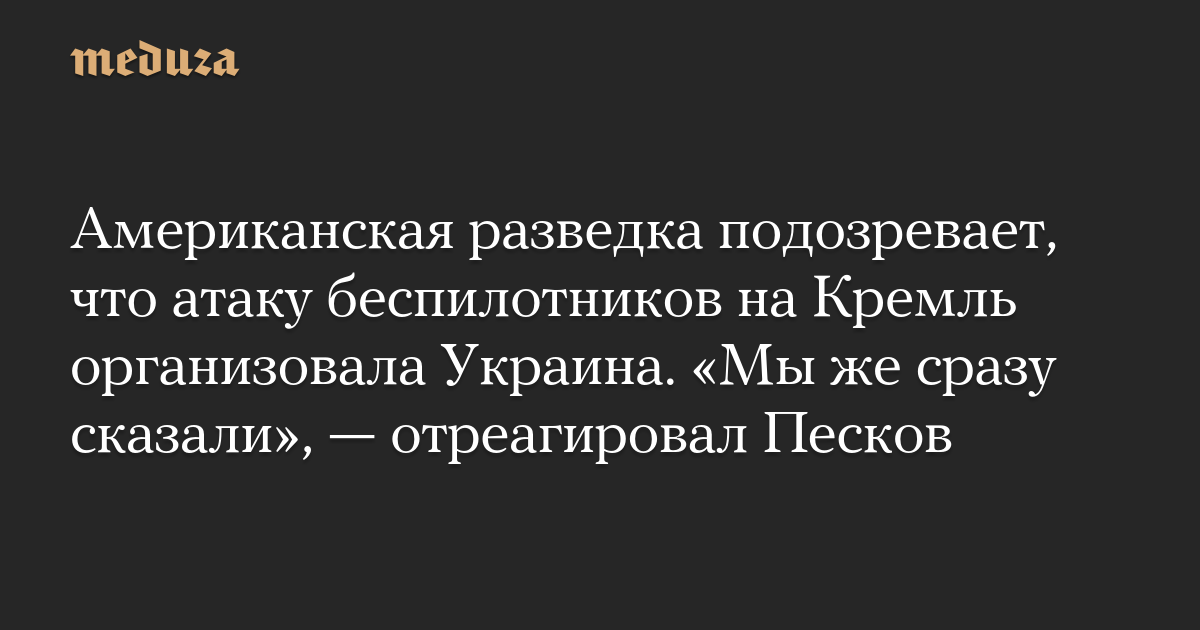 Американская разведка подозревает, что атаку беспилотников на Кремль организовала Украина. «Мы же сразу сказали», — отреагировал Песков