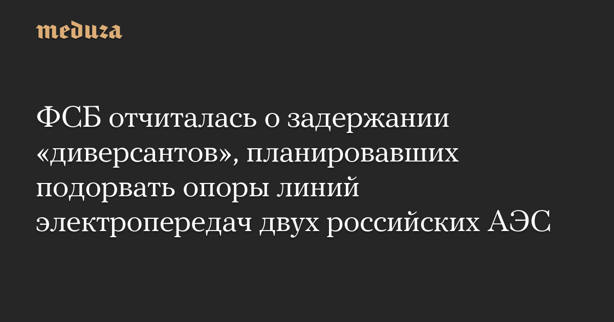 ФСБ отчиталась о задержании «диверсантов», планировавших подорвать опоры линий электропередач двух российских АЭС