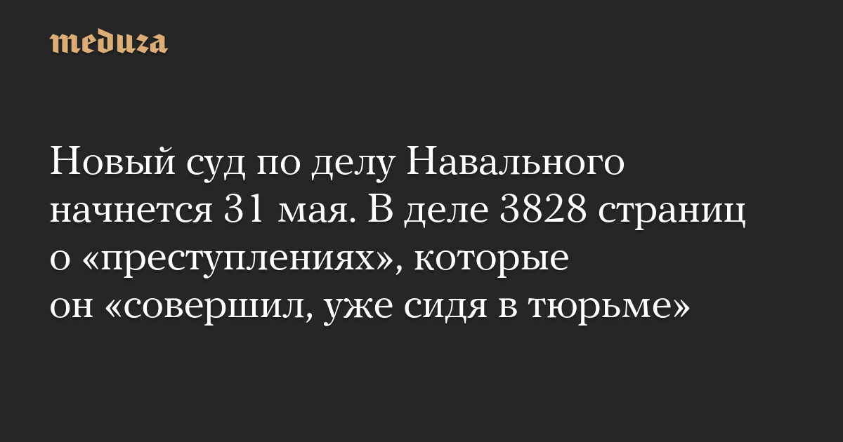 Новый суд по делу Навального начнется 31 мая. В деле 3828 страниц о «преступлениях», которые он «совершил, уже сидя в тюрьме»