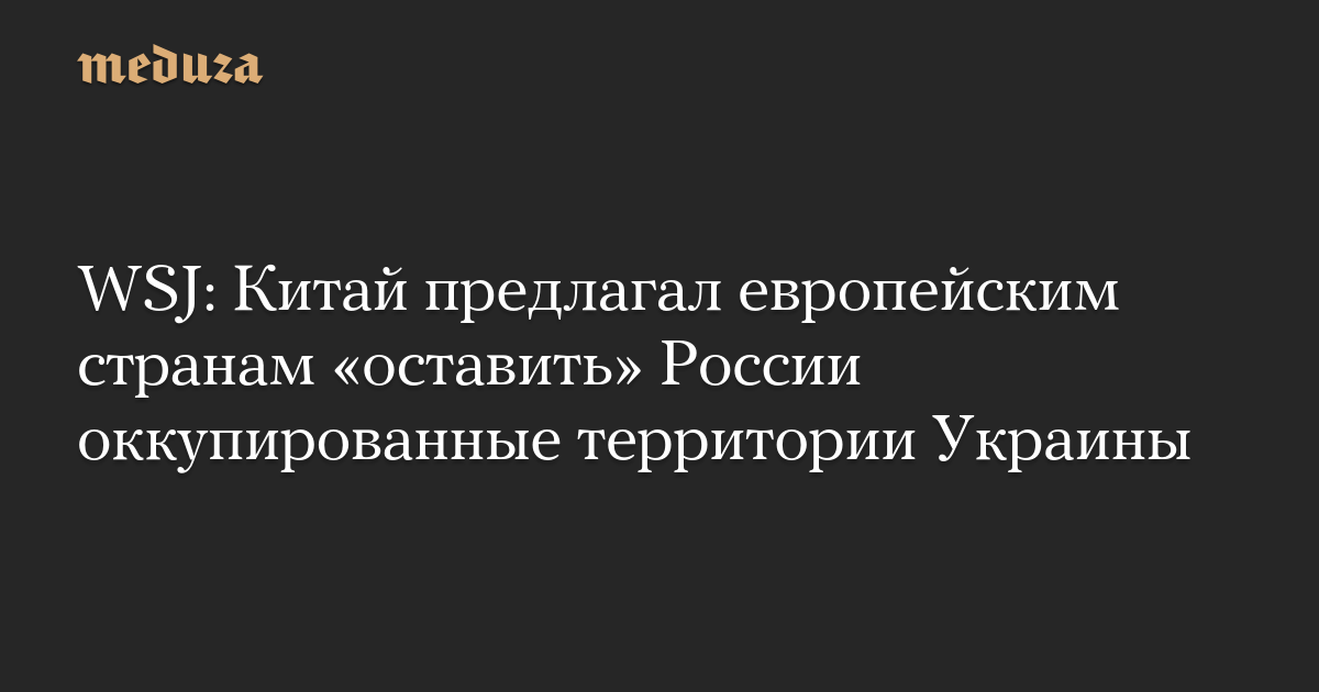 WSJ: Китай предлагал европейским странам «оставить» России оккупированные территории Украины