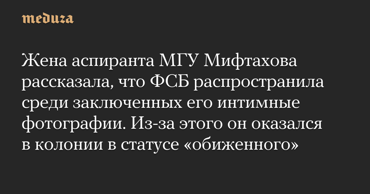 Жена аспиранта МГУ Мифтахова рассказала, что ФСБ распространила среди заключенных его интимные фотографии. Из-за этого он оказался в колонии в статусе «обиженного»
