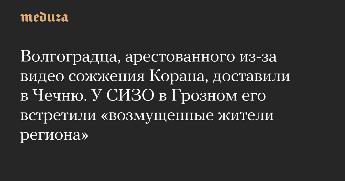 Волгоградца, арестованного из-за видео сожжения Корана, доставили в Чечню. У СИЗО в Грозном его встретили «возмущенные жители региона»