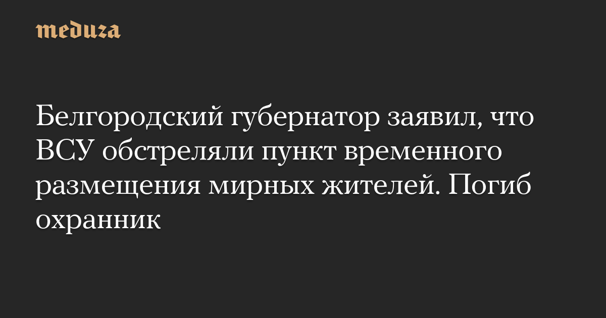 Белгородский губернатор заявил, что ВСУ обстреляли пункт временного размещения мирных жителей. Погиб охранник