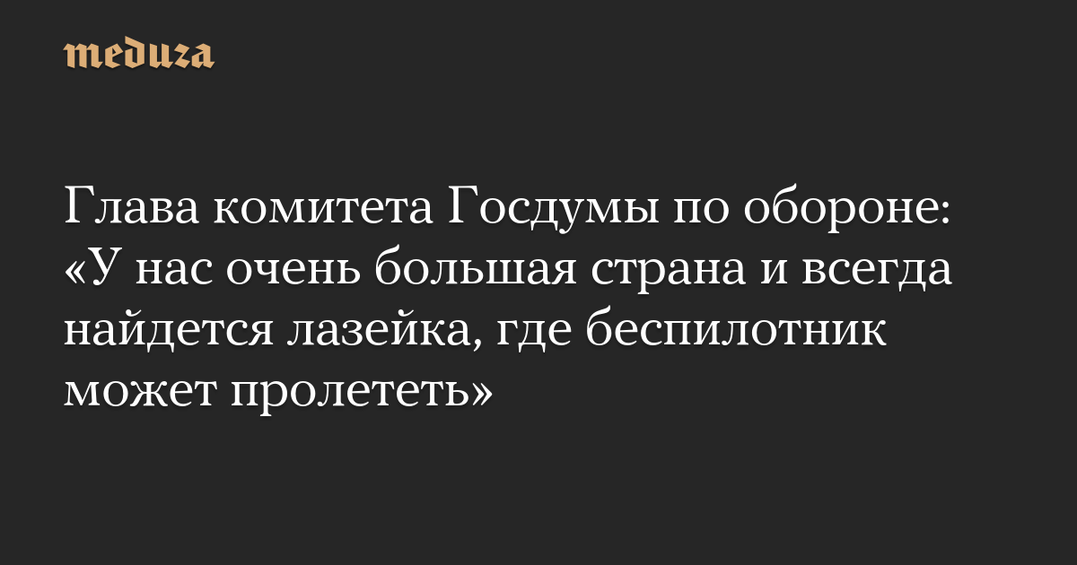 Глава комитета Госдумы по обороне: «У нас очень большая страна и всегда найдется лазейка, где беспилотник может пролететь»