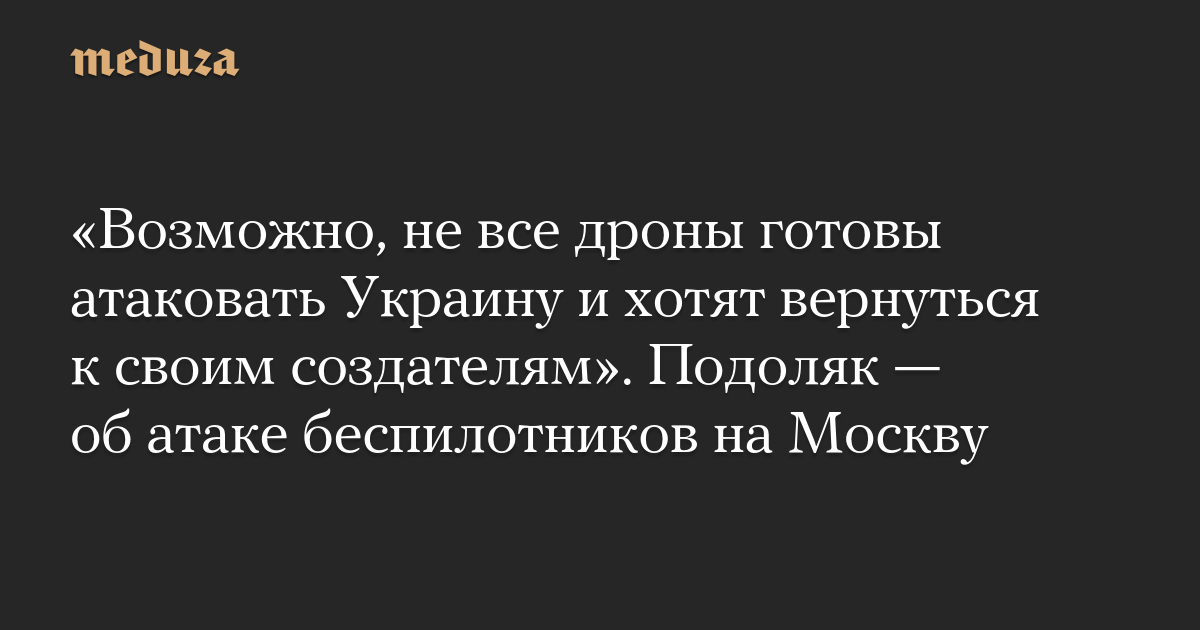 «Возможно, не все дроны готовы атаковать Украину и хотят вернуться к своим создателям». Подоляк — об атаке беспилотников на Москву