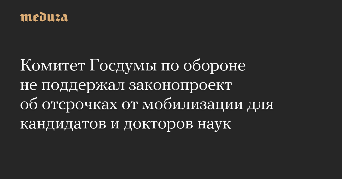Комитет Госдумы РФ по обороне рекомендовал отклонить законопроект, который предусматривает освобождение от мобилизации для обладателей научных степеней. Об этом сообщил автор инициативы, депутат от КПРФ Михаил Матвеев.