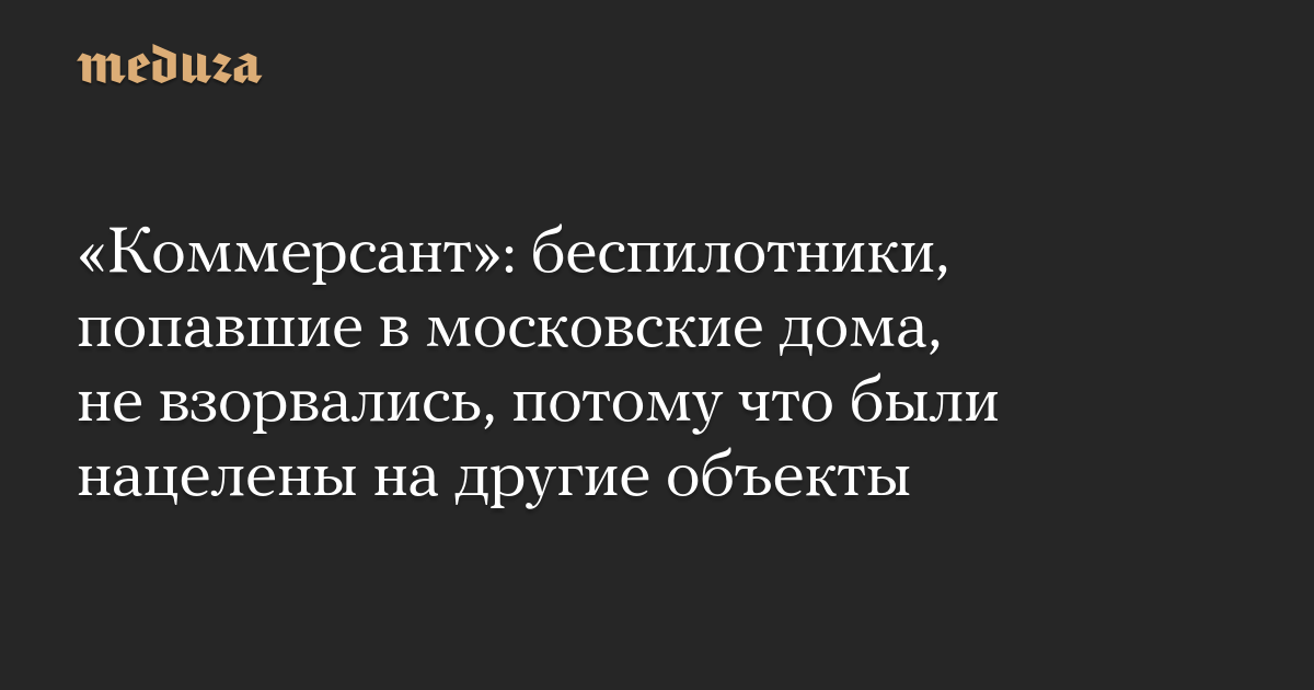 «Коммерсант»: беспилотники, попавшие в московские дома, не взорвались, потому что были нацелены на другие объекты