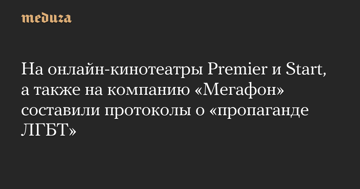 На российские онлайн-кинотеатры Premier и Start, а также на компанию «Мегафон», которая владеет, в числе прочего «Мегафон ТВ» и является совладельцем Start, завели административные дела по статье об «ЛГБТ-пропаганде» среди несовершеннолетних.