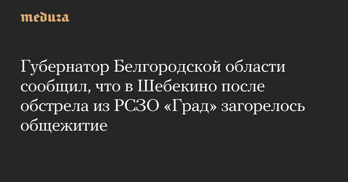 Губернатор Белгородской области сообщил, что в Шебекино после обстрела из РСЗО «Град» загорелось общежитие