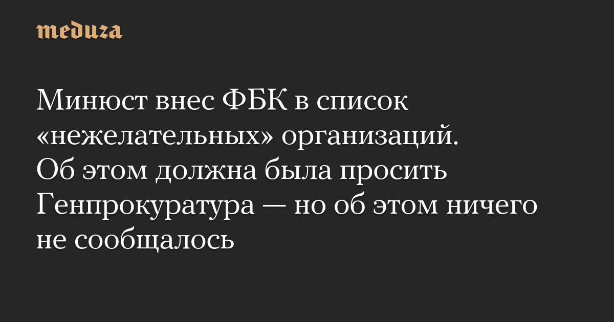 Минюст внес ФБК в список «нежелательных» организаций. Об этом должна была просить Генпрокуратура — но об этом ничего не сообщалось