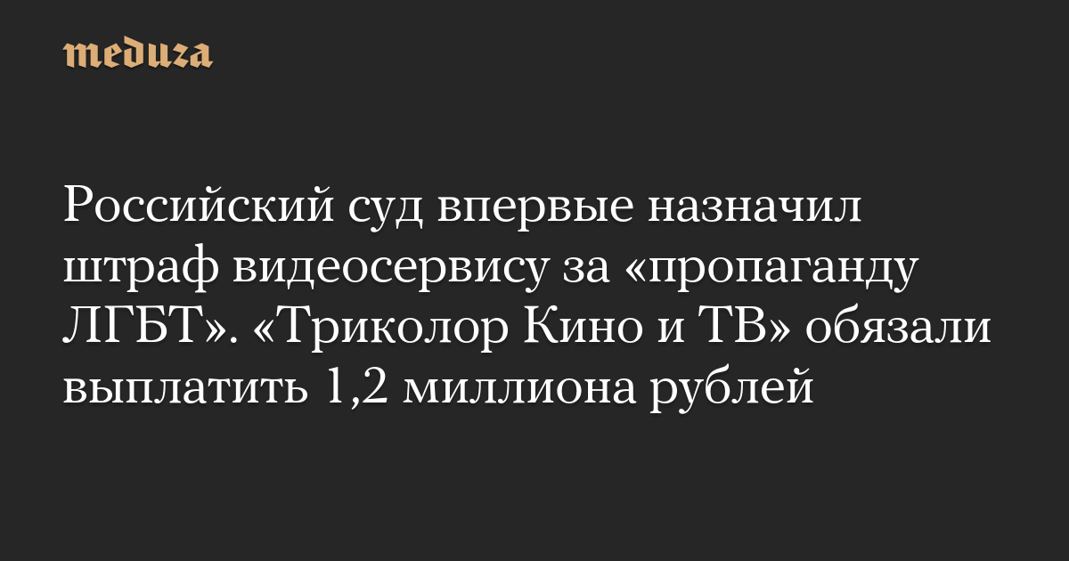 Российский суд впервые назначил штраф видеосервису за «пропаганду ЛГБТ». «Триколор Кино и ТВ» обязали выплатить 1,2 миллиона рублей