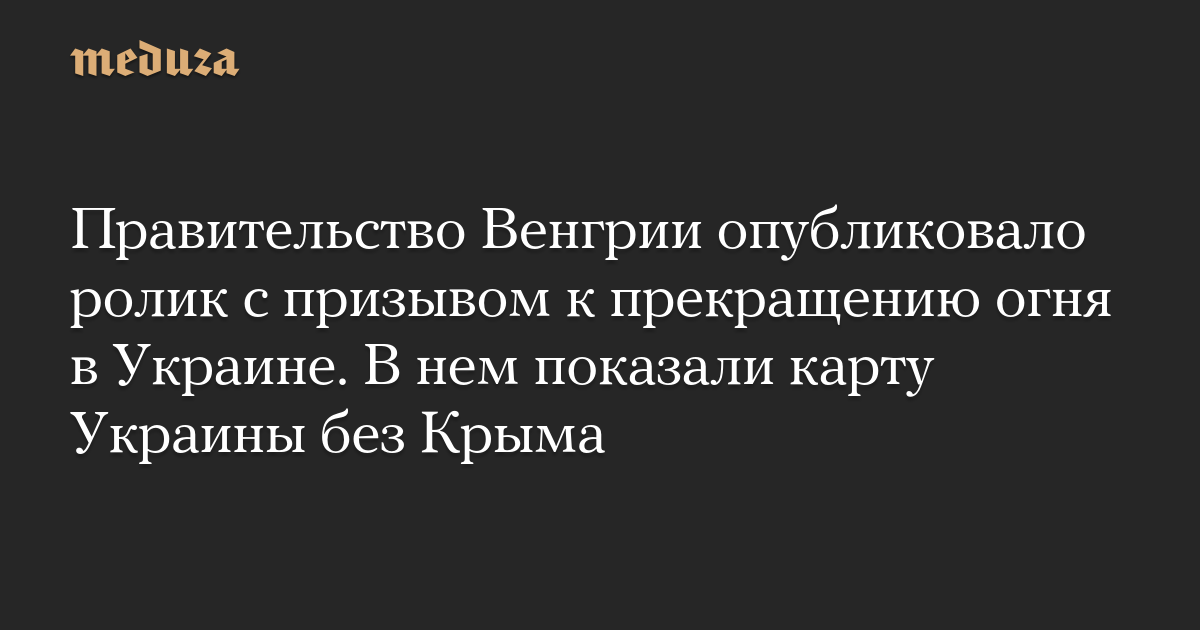 Правительство Венгрии опубликовало ролик с призывом к прекращению огня в Украине. В нем показали карту Украины без Крыма