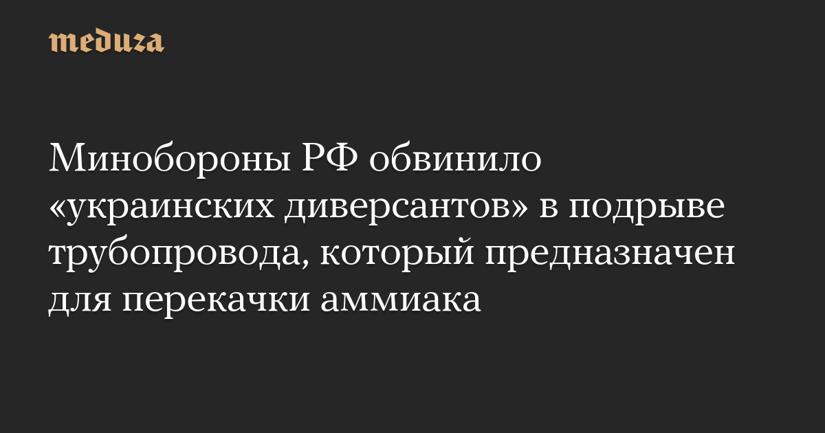 Минобороны РФ обвинило «украинских диверсантов» в подрыве трубопровода, который предназначен для перекачки аммиака