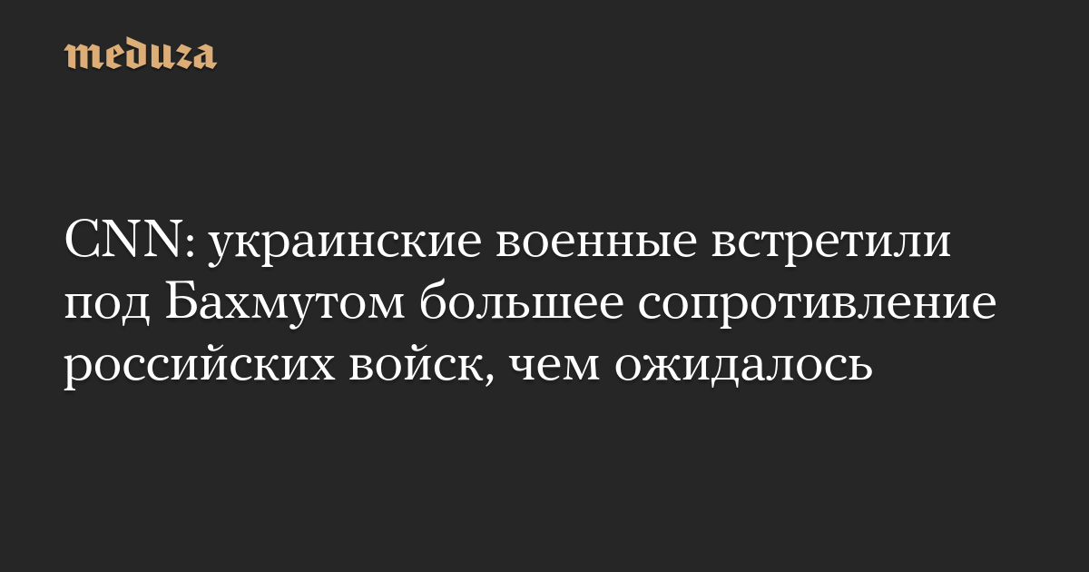 CNN: украинские военные встретили под Бахмутом большее сопротивление российских войск, чем ожидалось