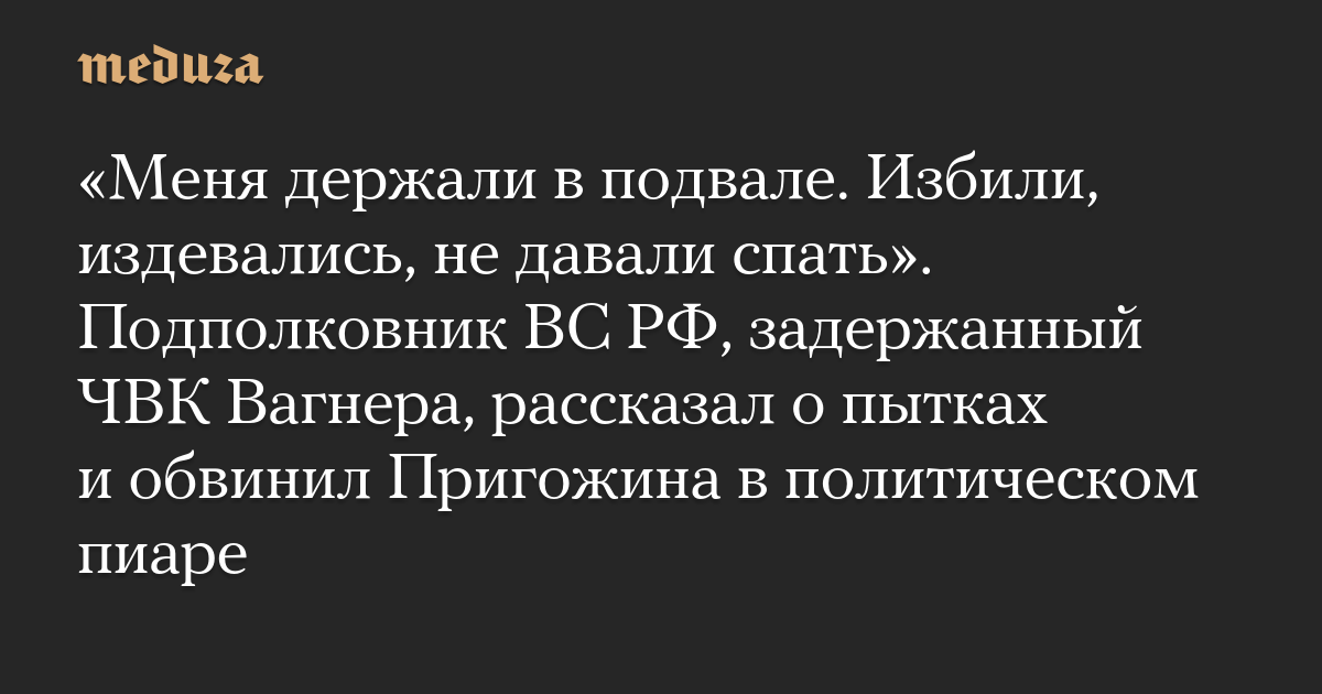 «Меня держали в подвале. Избили, издевались, не давали спать». Подполковник ВС РФ, задержанный ЧВК Вагнера, рассказал о пытках и обвинил Пригожина в политическом пиаре