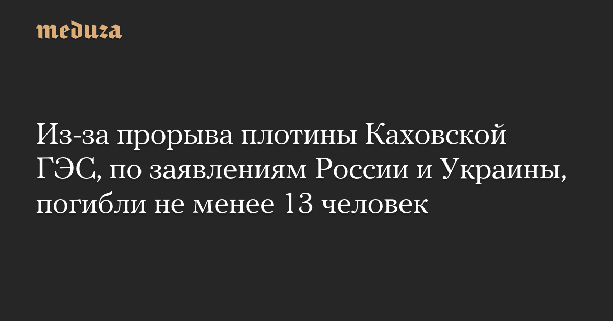 Из-за прорыва плотины Каховской ГЭС, по заявлениям России и Украины, погибли не менее 13 человек