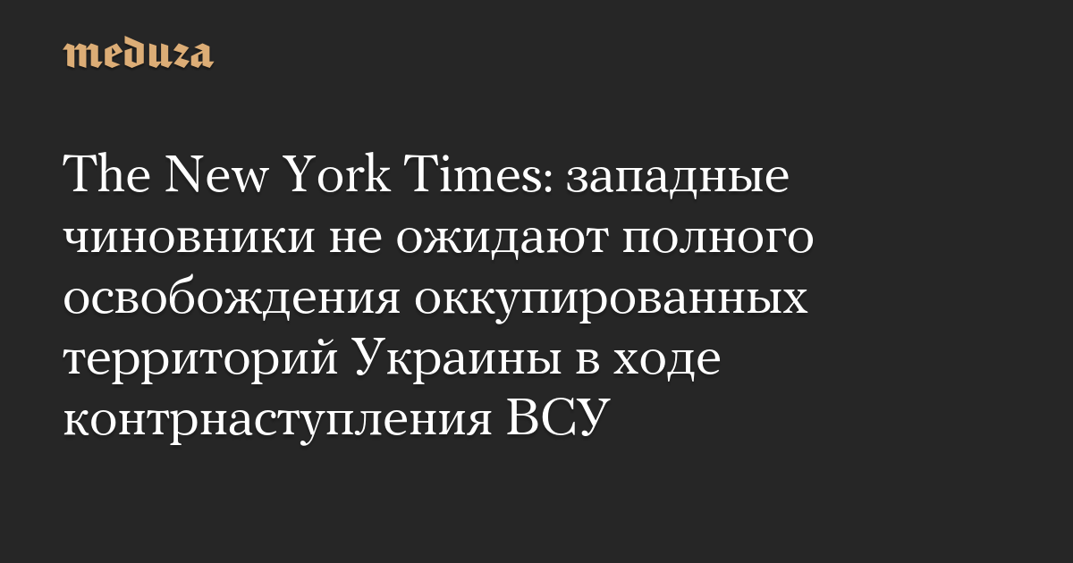 The New York Times: западные чиновники не ожидают полного освобождения оккупированных территорий Украины в ходе контрнаступления ВСУ