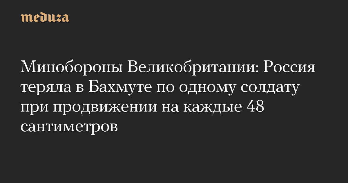 По оценке министерства, российские силы продвинулись на бахмутском направлении примерно на 29 километров. «Это соответствует 48 сантиметрам на каждого убитого или раненого солдата», — говорится в записи.