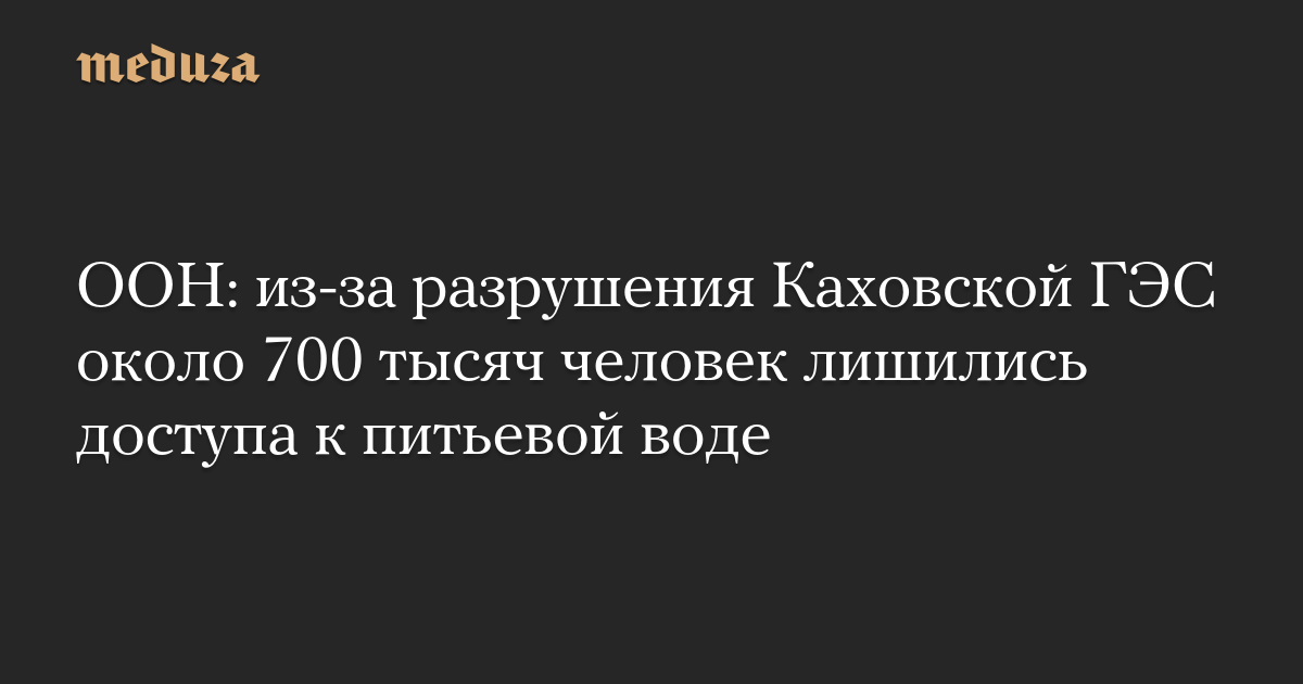 ООН: из-за разрушения Каховской ГЭС около 700 тысяч человек лишились доступа к питьевой воде