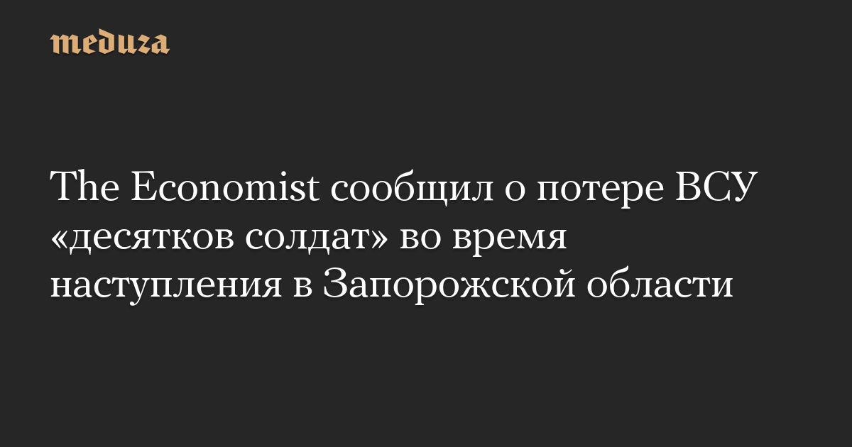 Во время наступления в районе населенных пунктов Орехов и Токмак в Запорожской области Украина понесла значительные потери в технике и живой силе. Об этом сообщает The Economist со ссылкой на источник в Генштабе ВСУ. По словам собеседника издания, речь идет о гибели «десятков солдат».