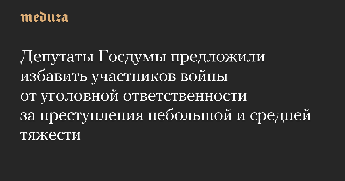 Депутаты Госдумы предложили избавить участников войны от уголовной ответственности за преступления небольшой и средней тяжести