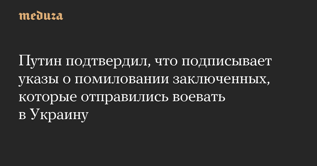 Президент РФ Владимир Путин подтвердил, что подписывает указы о помиловании заключенных, которые соглашаются отправиться воевать в Украину.