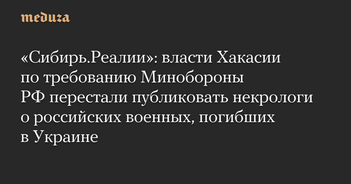 «Сибирь.Реалии»: власти Хакасии по требованию Минобороны РФ перестали публиковать некрологи о российских военных, погибших в Украине