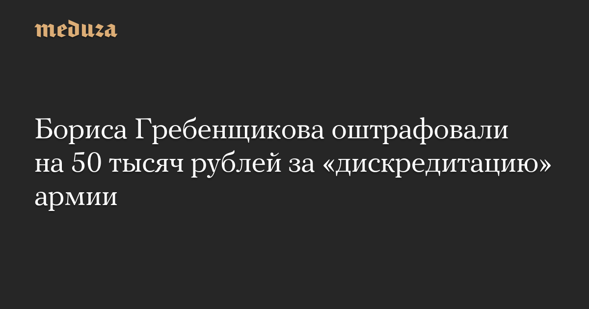Суд в Москве рассмотрел административный протокол о «дискредитации» армии, составленный на Бориса Гребенщикова, и назначил музыканту штраф 50 тысяч рублей.