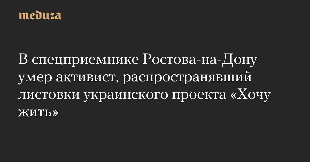 В спецприемнике Ростова-на-Дону умер активист, распространявший листовки украинского проекта «Хочу жить»